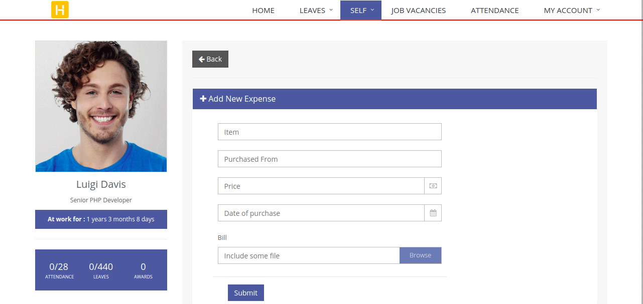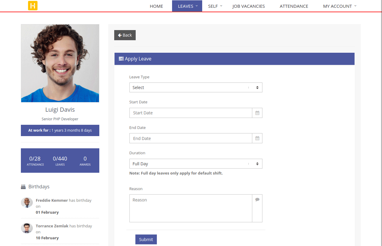 HRM focuses on providing easy access to information. Admin dashboard has common stats to give a good overview of what's going on in the organization. Stats like total employees, total departments, awards, attendance, company expenses, current month birthdays, awards list, etc. are available at hand on the dashboard itself.